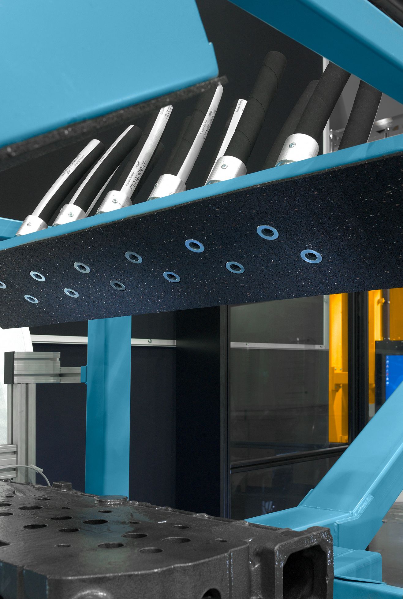 The machine can be delivered as a stand alone unit where workpieces are lifted to the nozzles or where nozzles move towards the workpiece, or with a fully automated transport system integrated in a production line.