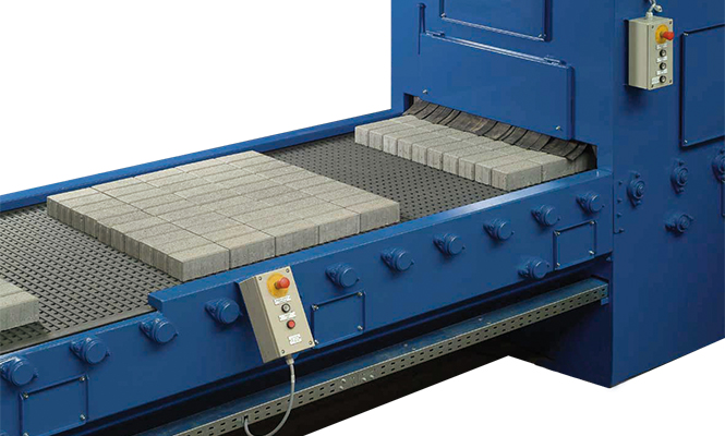 The concrete block blast machine can be integrated into a production line due to its modern control system with the relevant interfaces, different belt lengths and well coordinated transfer stations (e.g. sheets or rollers). The machines can be operated easily using a Siemens Touchpanel.
