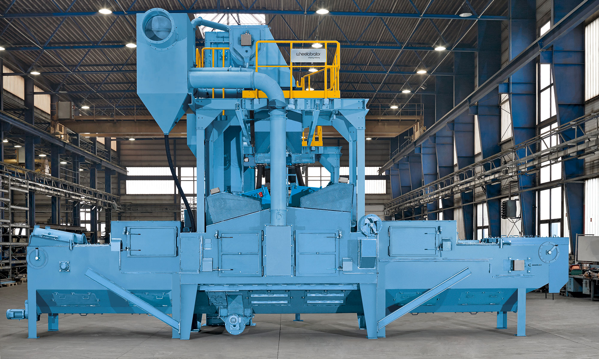 Wheelabrator RDS shot peening machines have a compact design and require only minimal space. They can be easily integrated into existing production lines. Once integrated into automatic procedures the installation only requires periodical inspection, and operating expenses can be reduced. The components within the blasting zone (housing, blast wheels) are made of high wear resistant material or protected against the abrasive effect of steel shot to extend operating life and reduce costs.