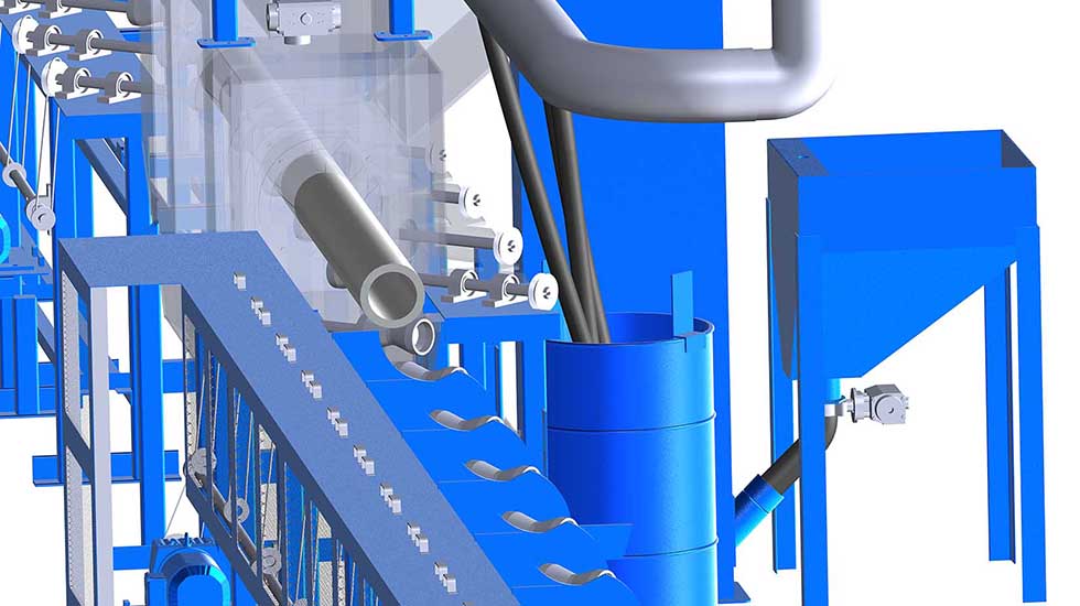The Wheelabrator skew roll machine is a fully automated system designed to remove rust and scale from many cylindrical parts: