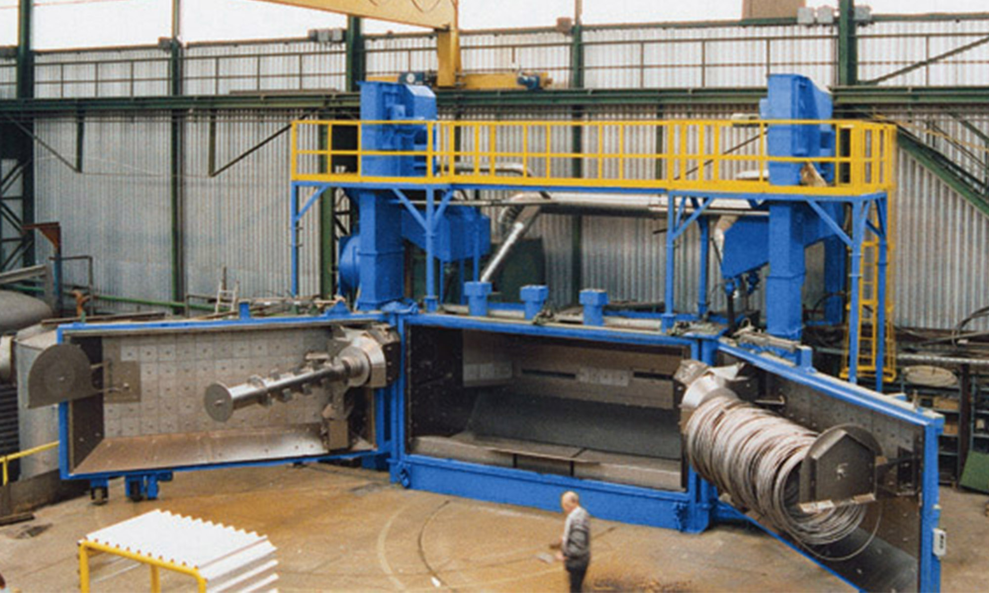 Wire and coil profiles can be blast cleaned in a single or multistrand method. Single or Multi-strand longitudinal blast machines not only meet different capacity requirements, but can be optimally adapted to changing product runs. These shot blast machines are easy to integrate into modern drawing lines operating at speeds of up to 240m/min or can be used as stand-alone machines for autonomous finishing. Wheelabrator offers coil blasting solutions to treat wire in coils. The number and position of wheels is expressly designed for this difficult application to achieve maximum coverage.