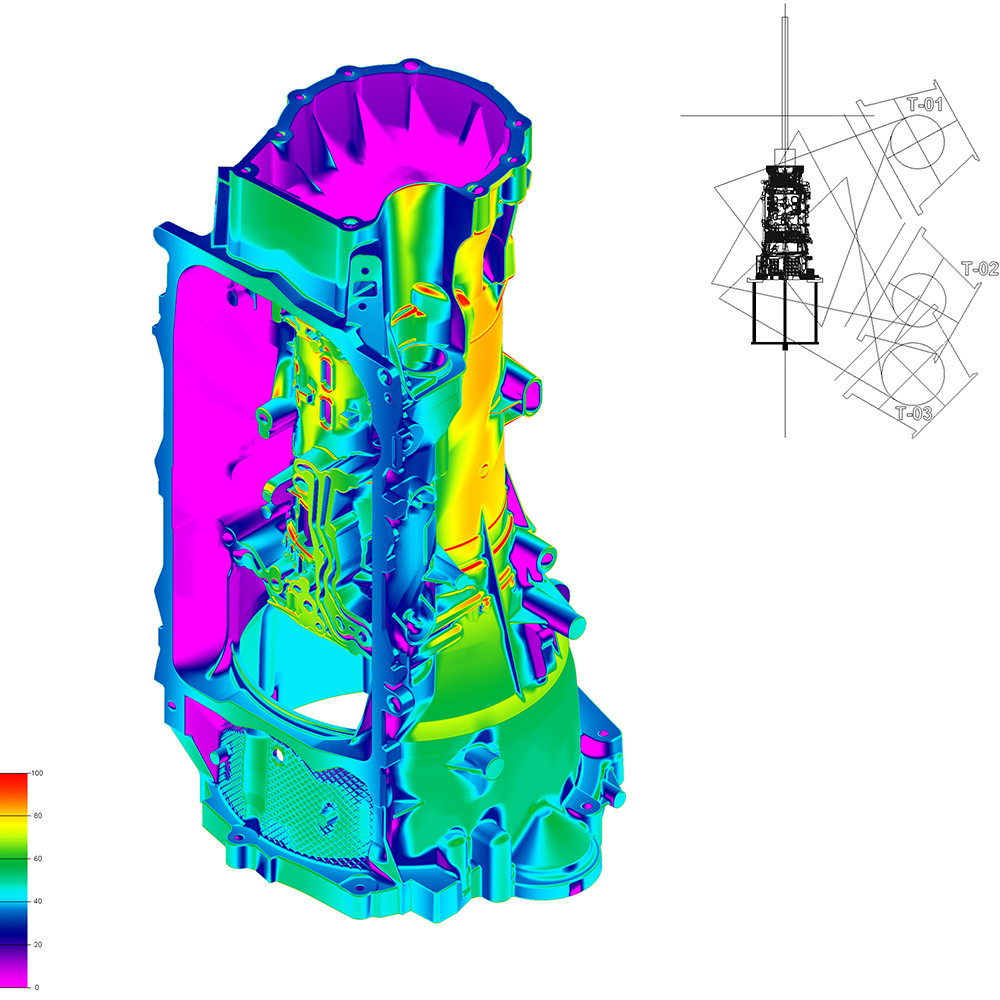 The team uses a virtual model of the workpiece and runs it through a virtual blast wheel or nozzle arrangement, controlling all relevant parameters.