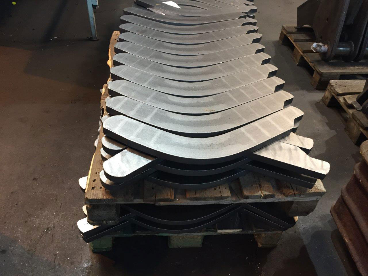 The facility makes mounted reversible ploughs in Amazone’s “Cayros” range, for which various steel components are shot blasted before assembly and coating.