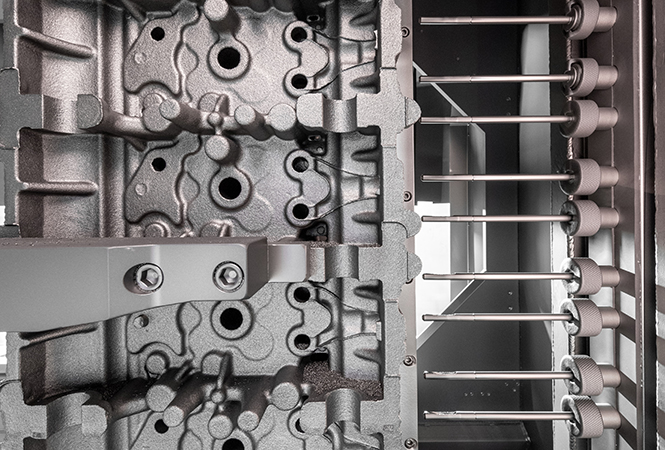 维尔贝莱特内部喷砂清理机可针对简单或复杂铸件的内部进行喷砂,例如气缸盖孔和水套、曲轴箱、发动机机体和悬架部件。